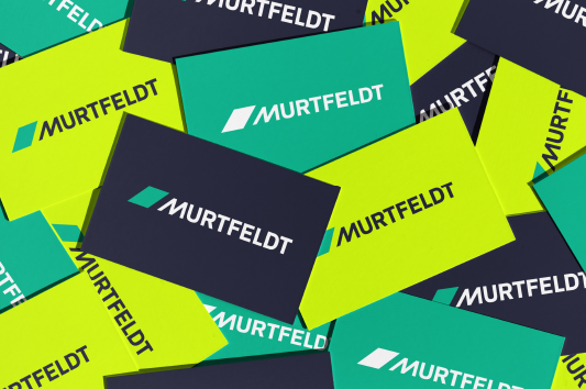 unsere ikonischen Wiedererkennungsmerkmale: Das "S" Grün in der vorwärtsgewandten Form sowie das MURTFELDT „M“, das diese Dynamik aufnimmt. Der Schriftzug wird aber moderner, reduzierter - vor allem aber größer!