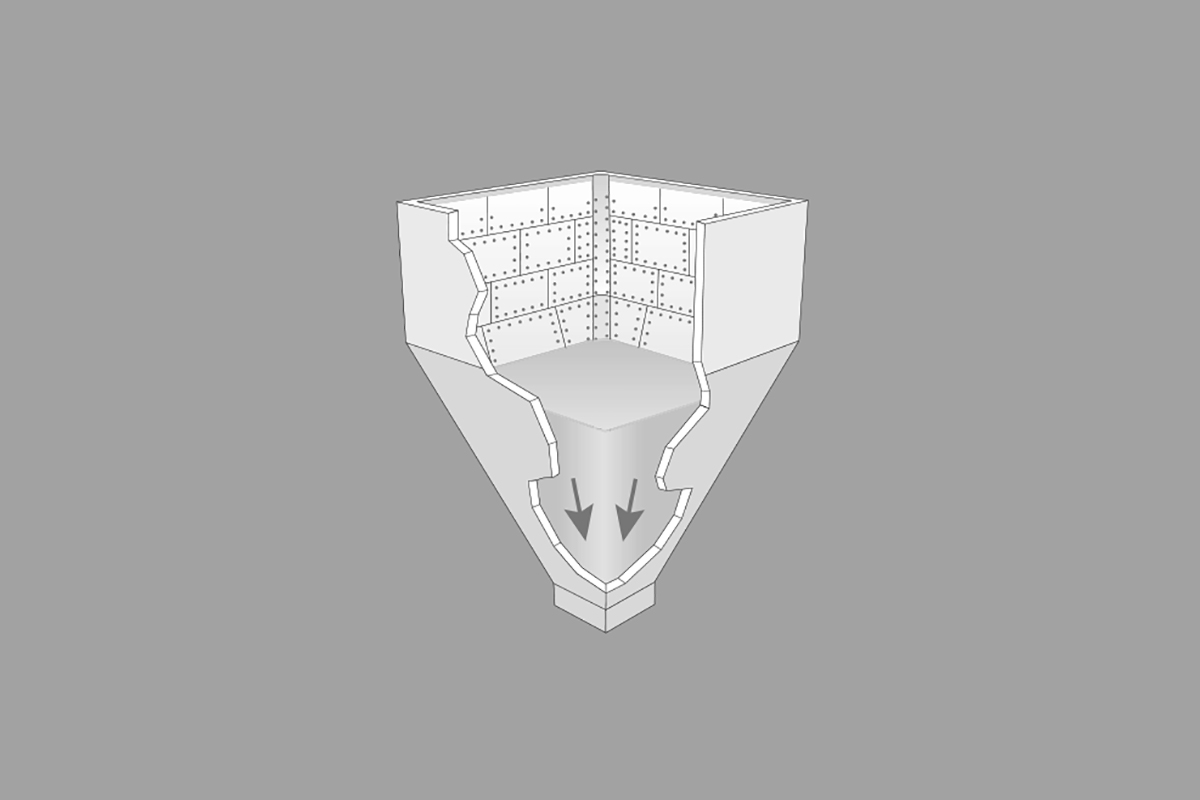 In bulk material handling systems such as bunkers, silos, hoppers, chutes, and troughs, material flow disruptions frequently occur, which can significantly impact the efficiency of entire production processes. Typical problems like core flow, bridging, or caking not only reduce conveying capacity but, in the worst case, can lead to a complete plant shutdown – with considerable economic consequences.