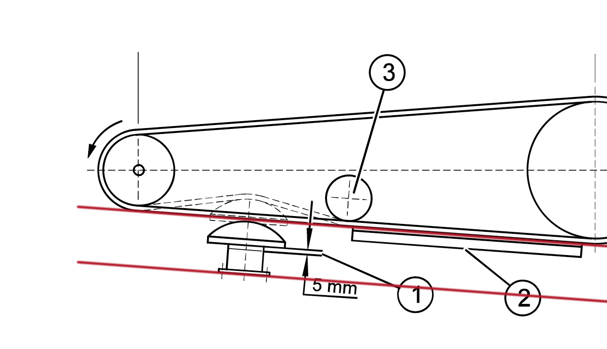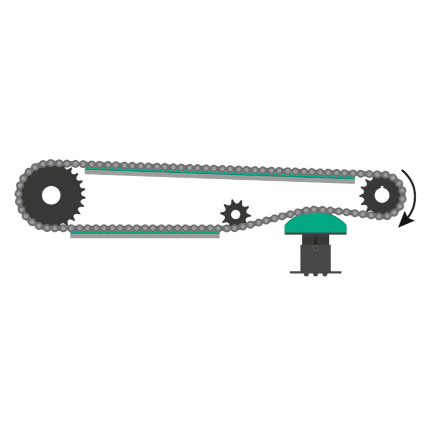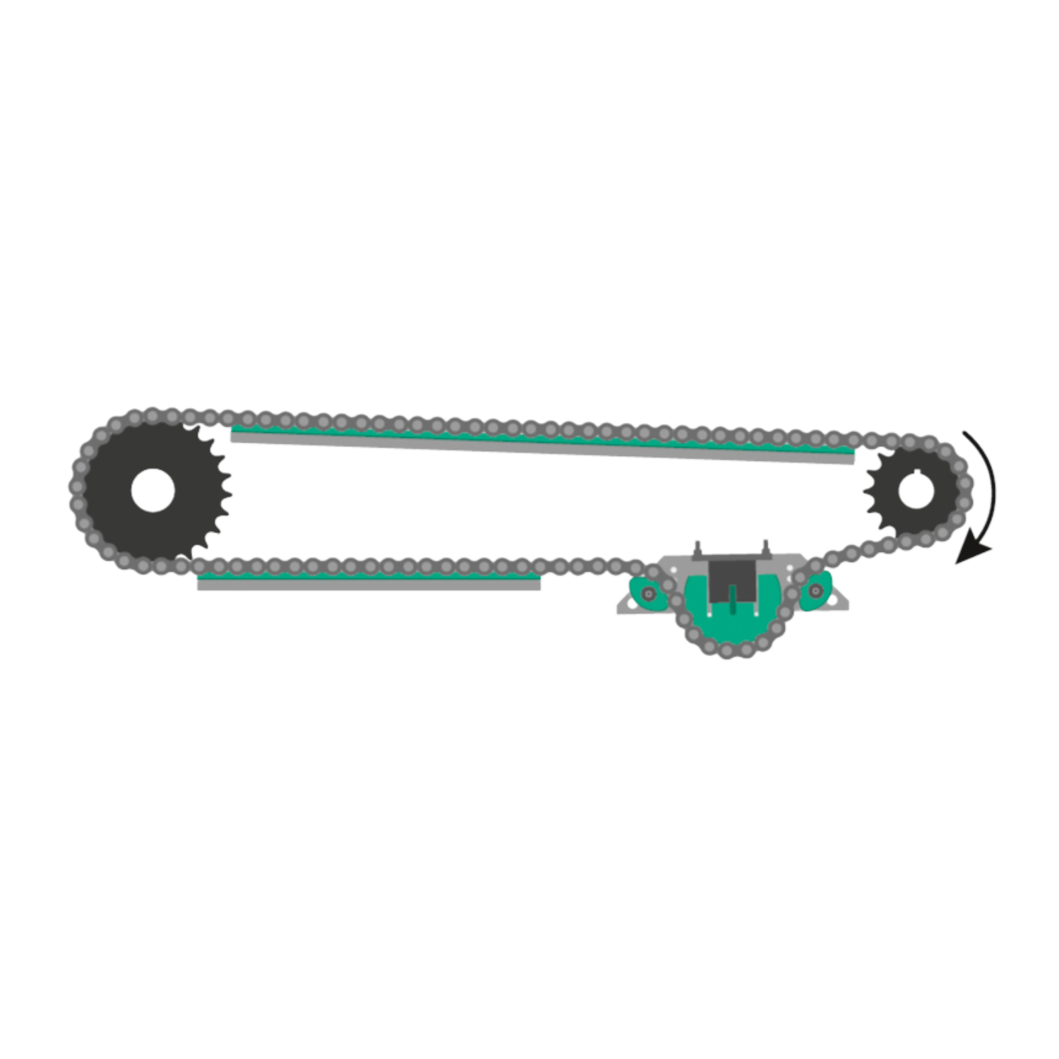 The Mini-Spanner, Spann-Boy®, and Spann-Box® chain tensioners operate with a spring action or free oscillation. To avoid increased surface pressure and the resulting excessive wear of the sliding profile, the chain tensioner should always have a minimum spring travel of 5 mm.