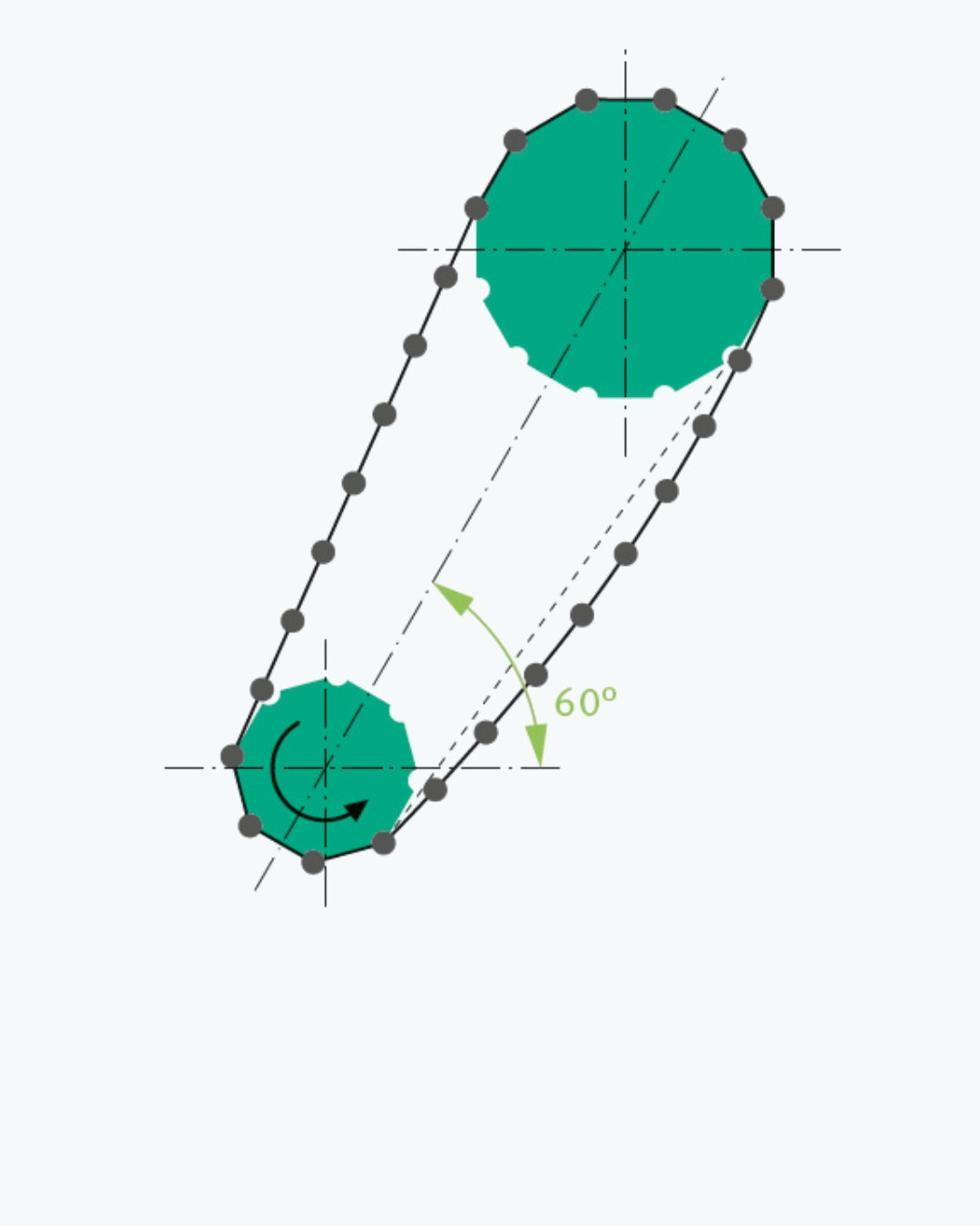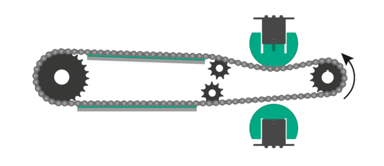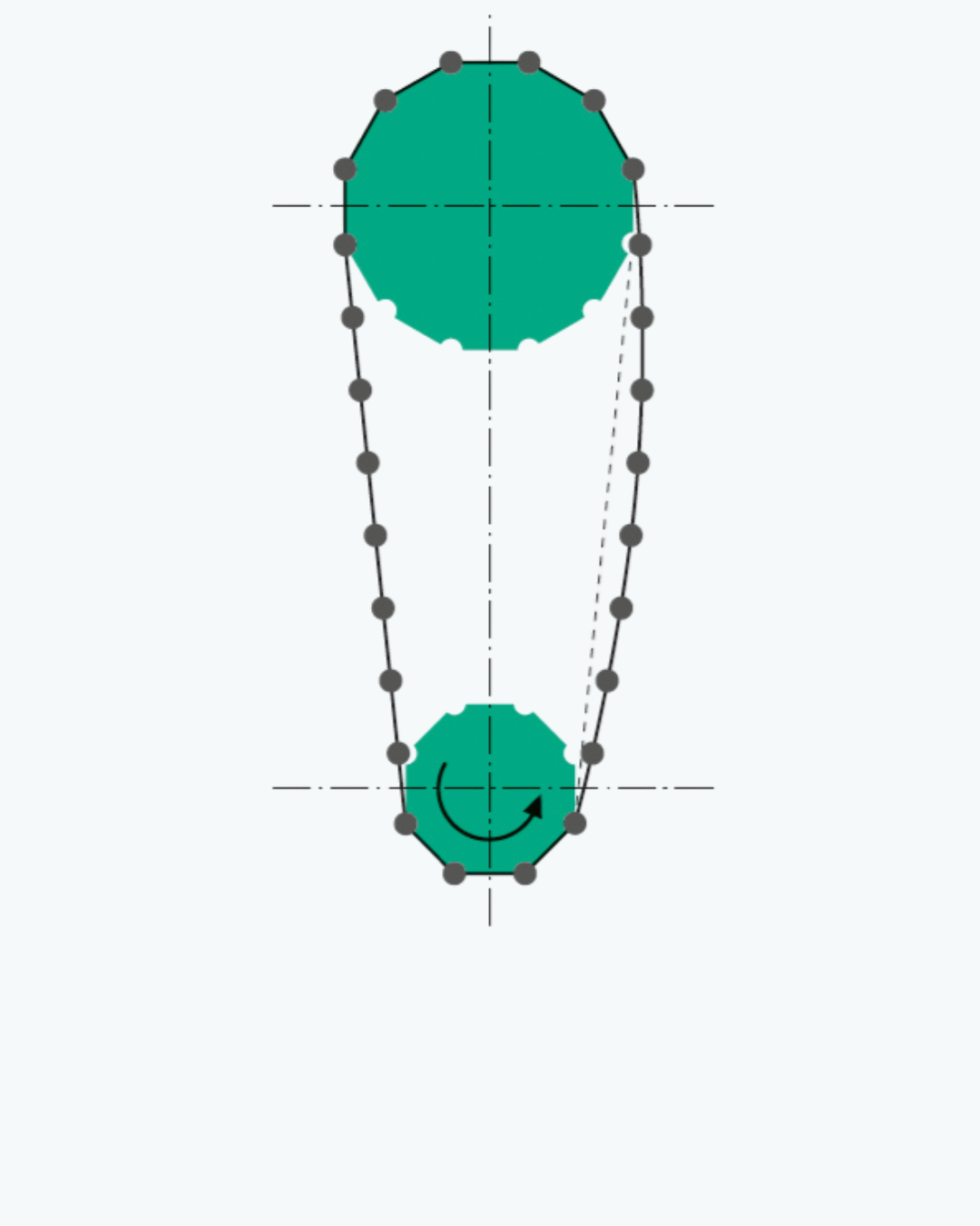 The Mini-Spanner, Spann-Boy®, and Spann-Box® chain tensioners operate with a spring action or free oscillation. To avoid increased surface pressure and the resulting excessive wear of the sliding profile, the chain tensioner should always have a minimum spring travel of 5 mm.