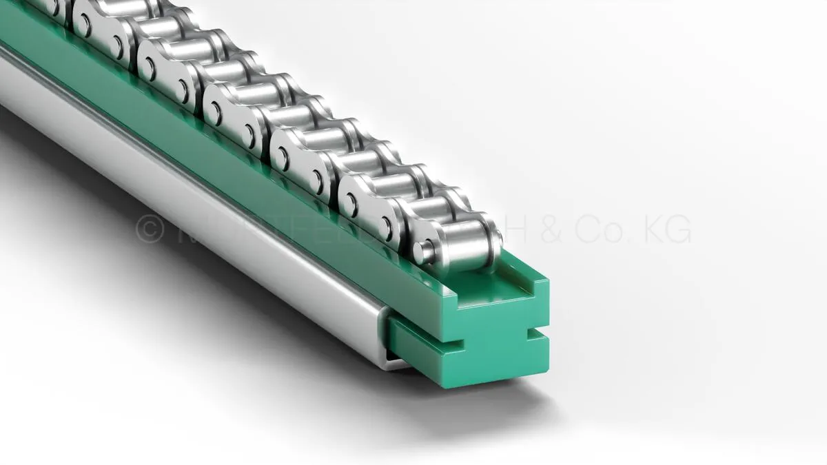 Our Type TU guide rail for simplex chains with optional steel-C preparation is made from our Original "S"® green® or our recycled material "S" newCycle® green and an ideal choice for durable solutions. Manufacturing according to DIN ISO 606 guarantees the highest precision and consistent quality.