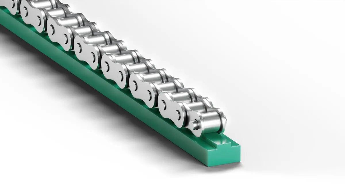 The chain guide rail for simplex chains is made from our Original "S"® green® or our recycled material "S" newCycle® green, which are characterized by precise tolerances in the plastic profile cross-section, as well as optimal performance and durability. They have been specially developed for applications where longevity is crucial.