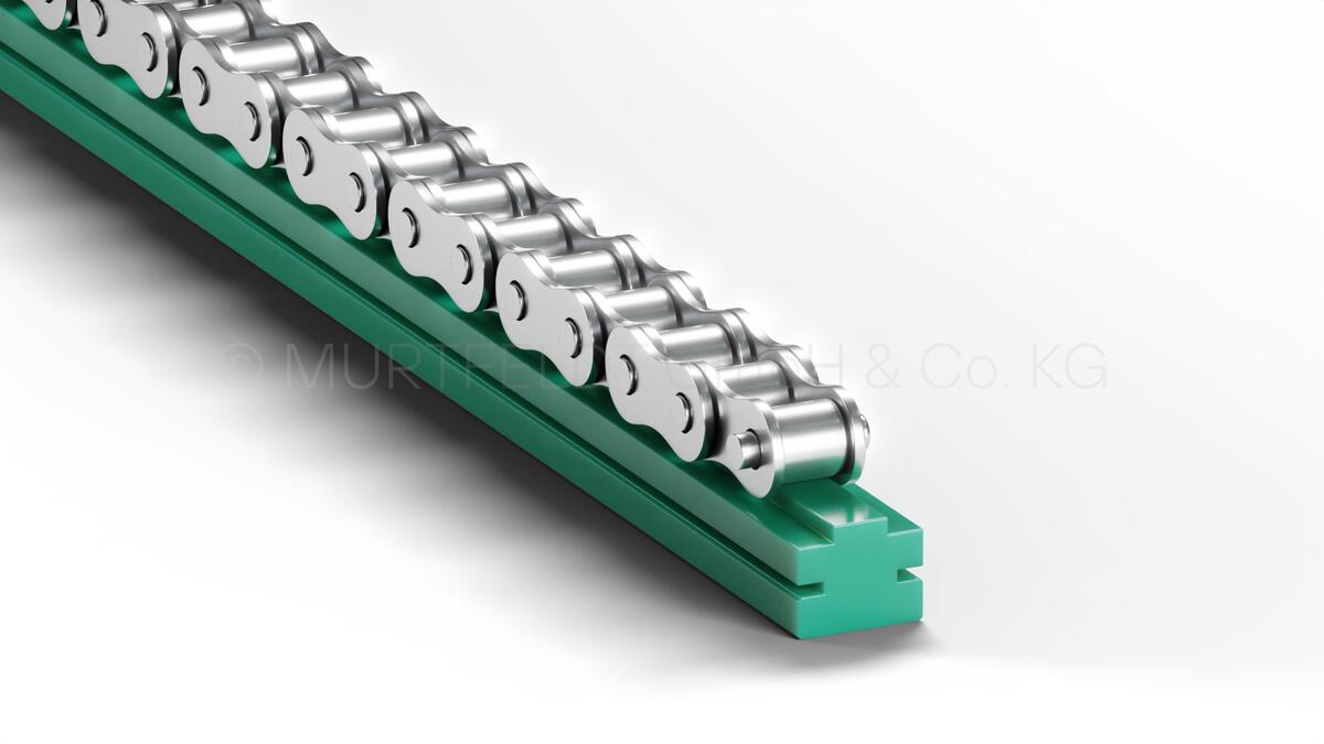 The chain guide rail for simplex chains is made from our Original "S"® green® or our recycled material "S" newCycle® green, which are characterized by precise tolerances in the plastic profile cross-section, as well as optimal performance and durability. They have been specially developed for applications where longevity is crucial.