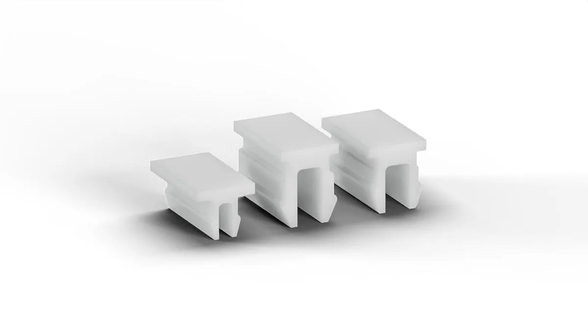 The Murytal® C natural connecting element easily connects slide guides to aluminium profile systems. The POM-C-based material offers the following advantages: